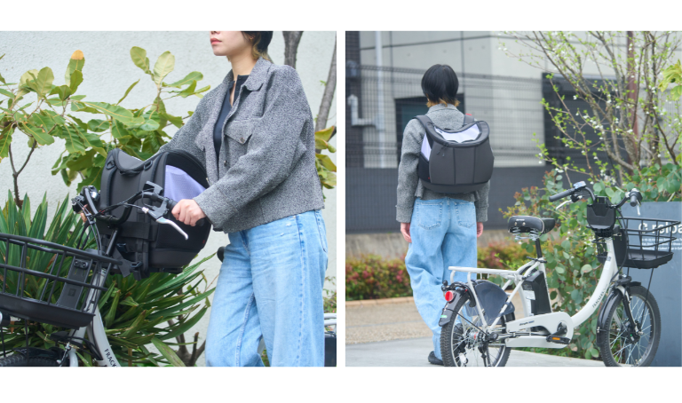 ペットキャリー初、自転車への取り付けとリュック使用を シームレスに切り替えられる「自転車用ペットリュック」新発売