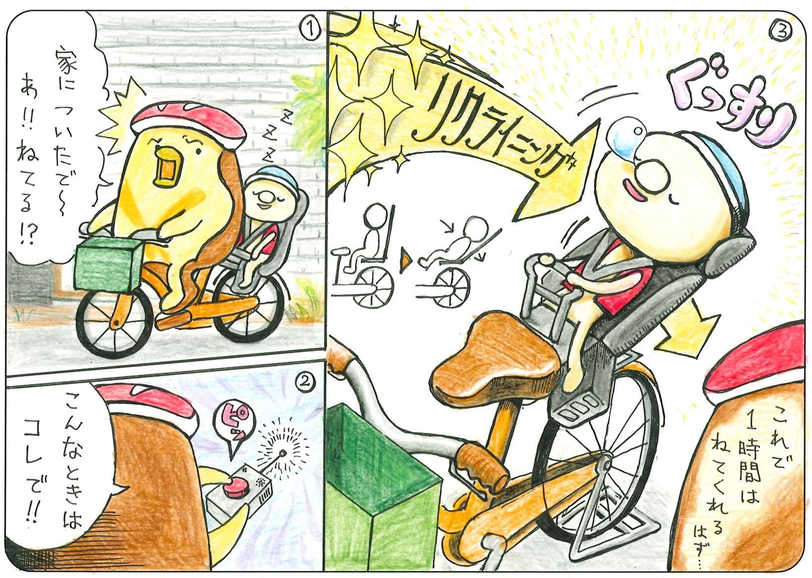 ・子どもがよくチャイルドシートで寝てしまうので、そのまま背もたれが倒れて簡易ベッドになるチャイルドシートがあればいいなと思い描きました。